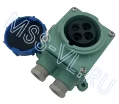 Portable power cable socket TDM has increased strength and resistance to mechanical impact, abrasion. It has increased moisture protection, which makes it an ideal choice for use on ships and in areas with high levels of humidity and dust, as well as it is used for power supply of industrial and construction equipment in particularly difficult working conditions.