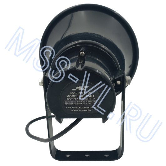 The JE-RT horn loudspeaker is designed primarily for voice broadcasting in integrated public address systems, but can also be used for background sound in noisy areas. Power is adjusted (full/half) by connecting the corresponding speaker line output wires via adapter blocks.