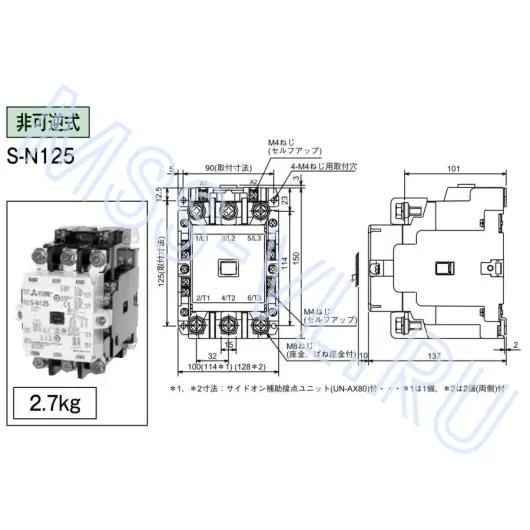 The S-N125 contactor from Mitsubishi Electric is used for frequent starting and control of AC motors, as well as for remote circuit closing/opening and switching of lighting networks.